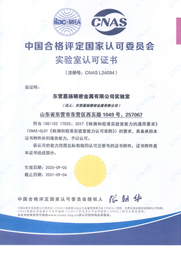ISO17025实验室CNAS认可证书